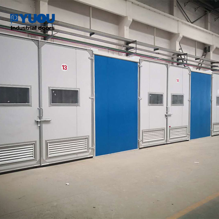 工業夾芯板大門廠家:豫歐門業生產的工業平開門具有以下特色:1.材質:門框(門包邊)為鋁合金型材或型鋼或不銹鋼,鋁型材門框壁厚2.5mm,門板為彩鋼復合板;2.配件:鋁型材軌跡,輪架,尼龍槽輪,上止動,防振球,鎖扣,導向輪,限位器,密封膠條等;3.特色:鞏固,抗風能力大(12級風),無噪音(尼龍槽輪和鋁型材軌跡),推拉簡便,密封性好,運用壽命長,免維護;4.運轉方法:手動為主,可電動;5.適用范圍:適用于中高 檔廠房車間,物流庫房等外用門。